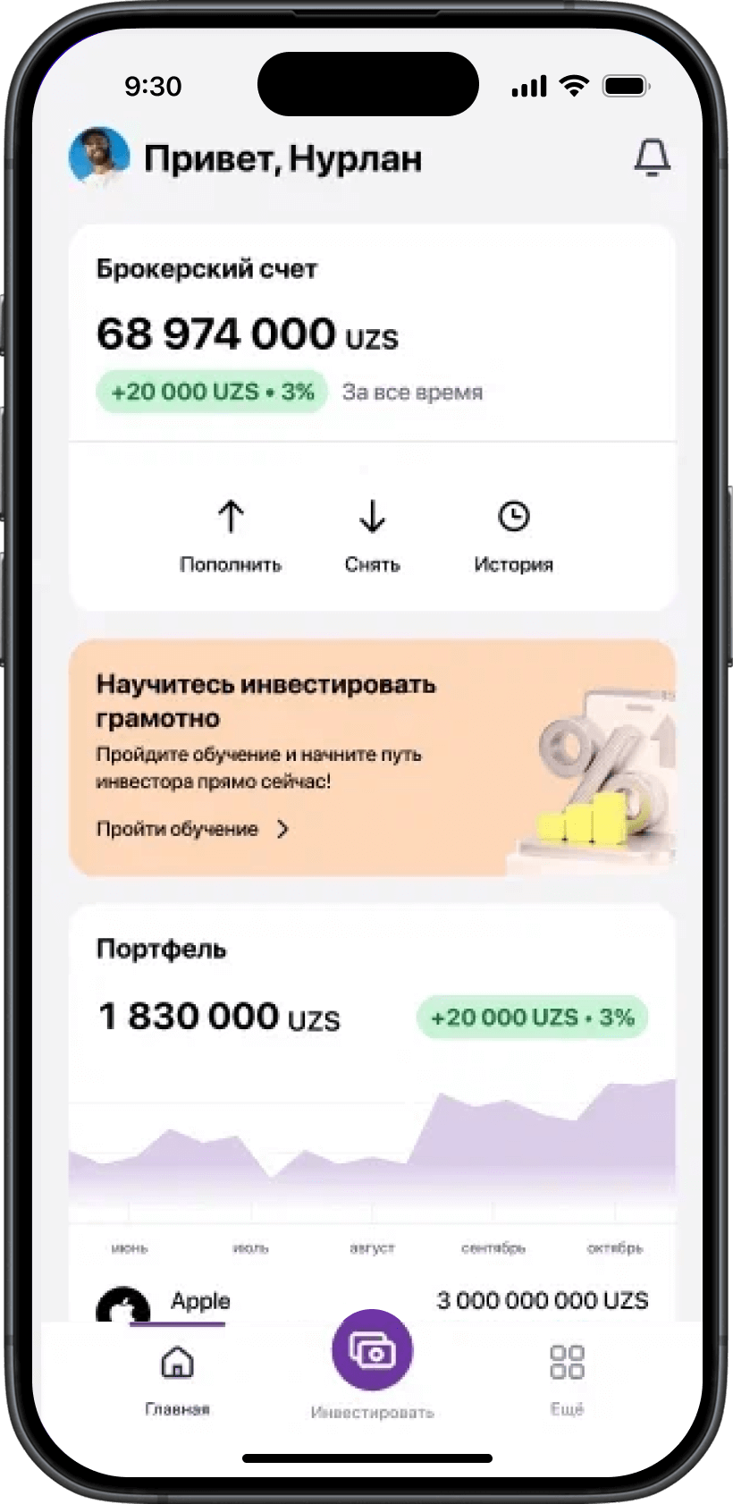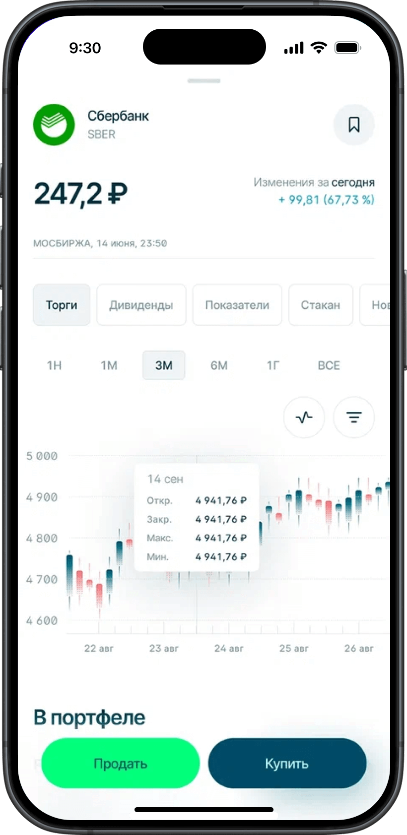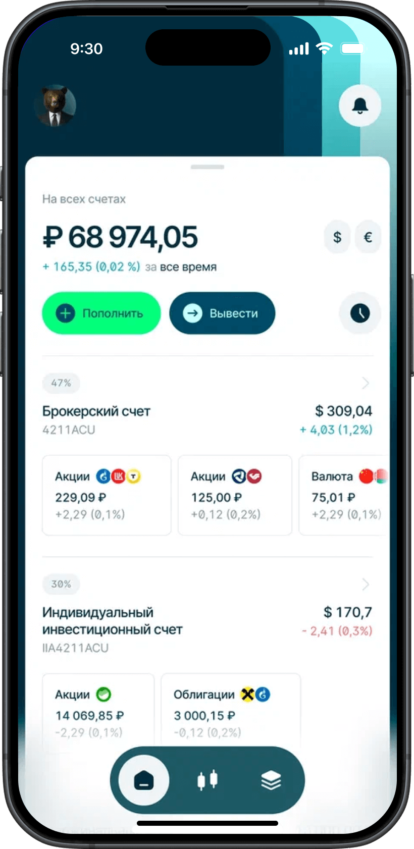 - Отслеживать доходность инвестиций в разделе Портфель.